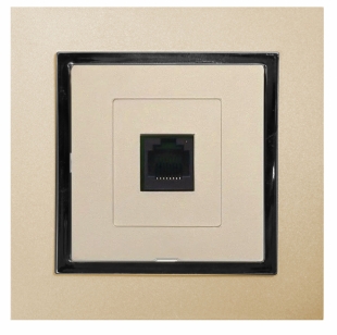 Počítačová zásuvka luxusní designové řady interiérových vypínačů a zásuvek "Magic" v pískové barvě s chromovaným, grafitovým nebo zlaceným ozdobným rámečkem (volitelné).