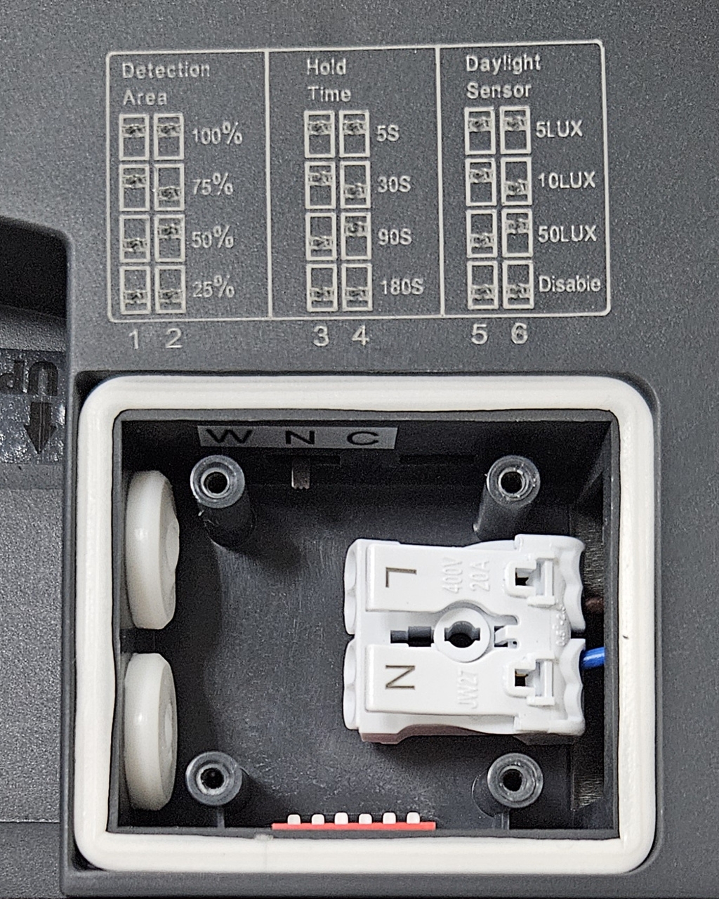 - Vypnuto (Disable) – Senzor ignoruje denní světlo a rozsvítí světlo vždy při detekci pohybu.