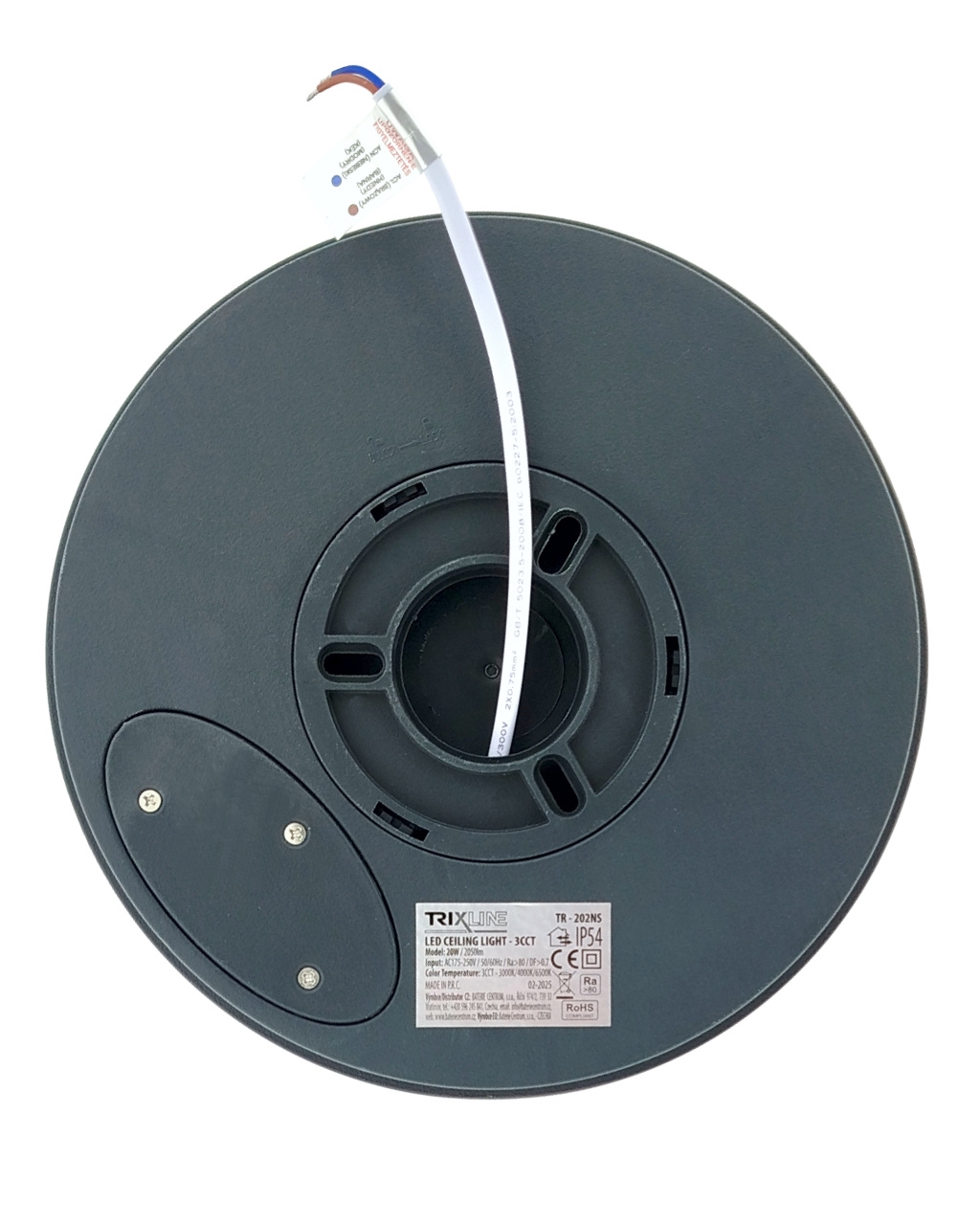 Moderní a výkonné LED CCT stropní svítidlo TR-202NS - o průměru 23cm a výšce 5,5cm poskytuje kvalitní a rovnoměrné osvětlení o síle 2050 lumenů. Perfektně se hodí pro obytné prostory, jako jsou obývací pokoje, ložnice, kuchyně, koupelny či chodby, stejně tak pro pracovny, kanceláře, technické místnosti, garáže, kryté venkovní prostory a pro komerční prostory. Nastavitelné CCT umožňuje volbu teplé, neutrální nebo studené bílé barvy světla (3000K/4000K/6500K) pro optimální přizpůsobení atmosféry každému prostoru. Příjemné a efektivní osvětlení, které splní vaše estetické i praktické požadavky.