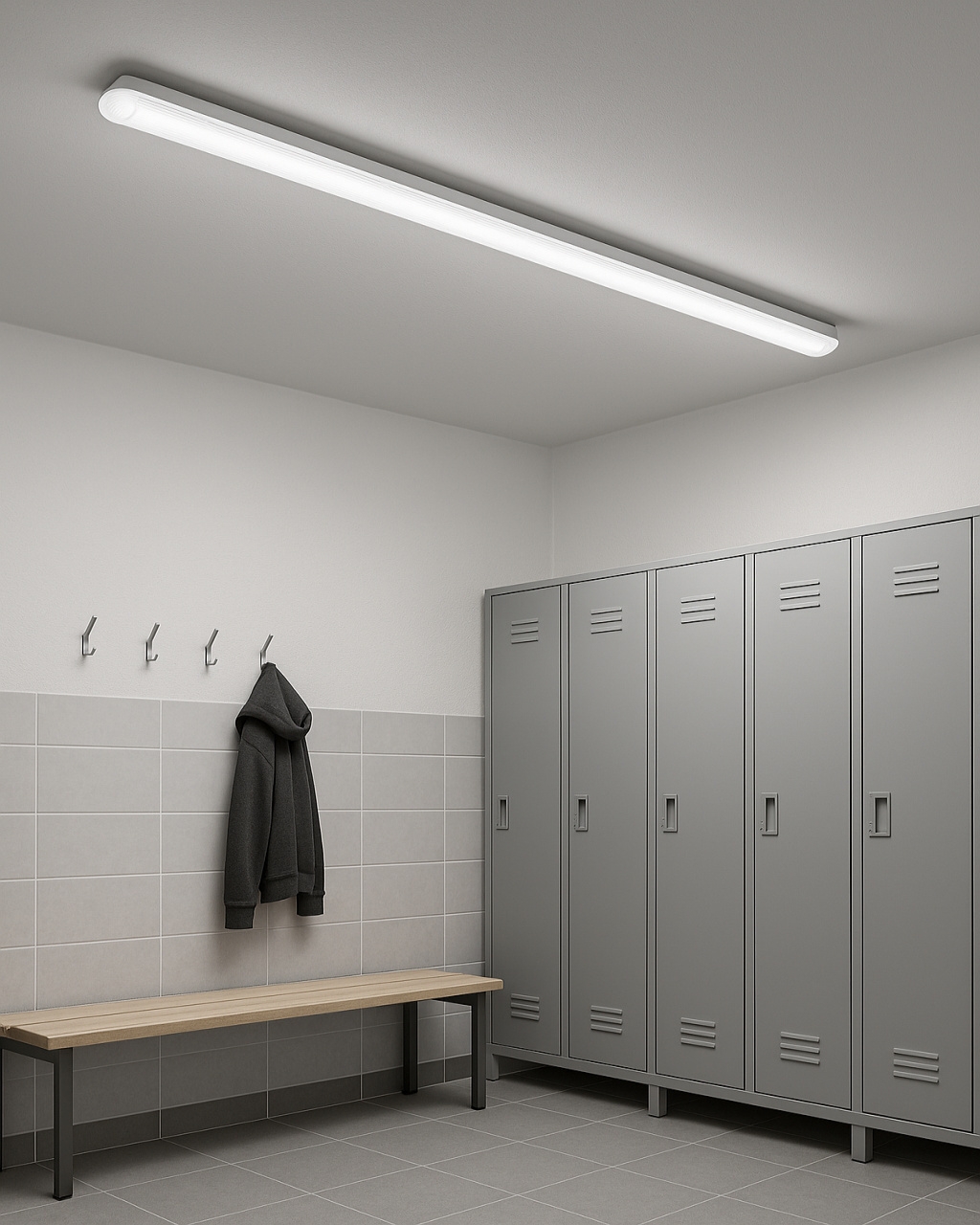 Svítidlo Q-156 TRI-PROOF LED 48W IP65 je výkonné a odolné prachotěsné svítidlo, vhodné pro náročné podmínky. Díky IP65 ochraně je ideální do vlhkého a prašného prostředí, například do skladů, garáží, dílen, šaten, technických místností nebo průmyslových hal.