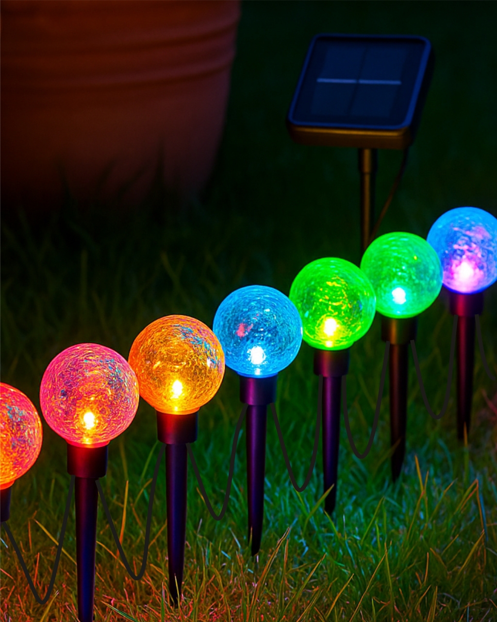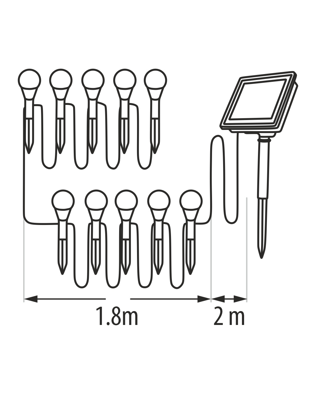 Stylové a úsporné řešení pro osvětlení vaší zahrady, terasy nebo balkónu. LED solární světlo TR-333D se skládá z deseti jednotlivých RGB LED diodových zápichů rozmístěných na kabelu o délce 3,8 metru. Díky solárnímu napájení a možnosti volby režimů svícení je ideální pro venkovní použití bez nutnosti připojení k elektrické síti.