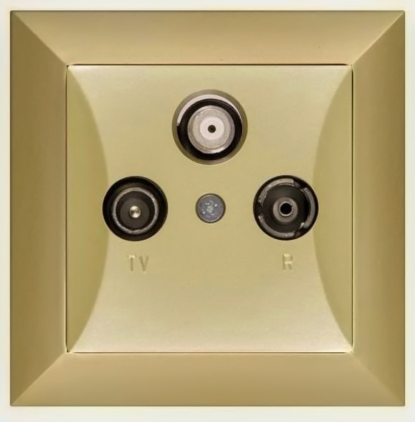 - Koncová zásuvka pro rozvod televizního, rádiového a satelitního vysílání