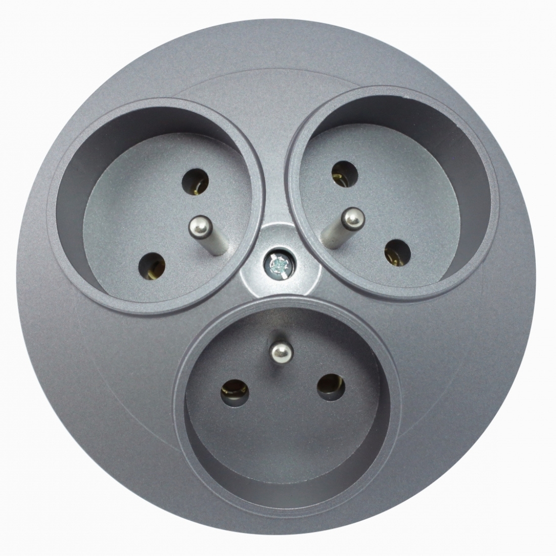 Zásuvka kulatá trojnásobná série Opál grafitová pod omítku