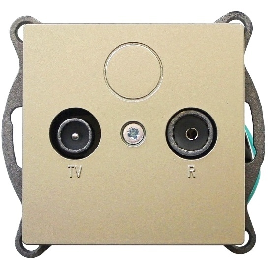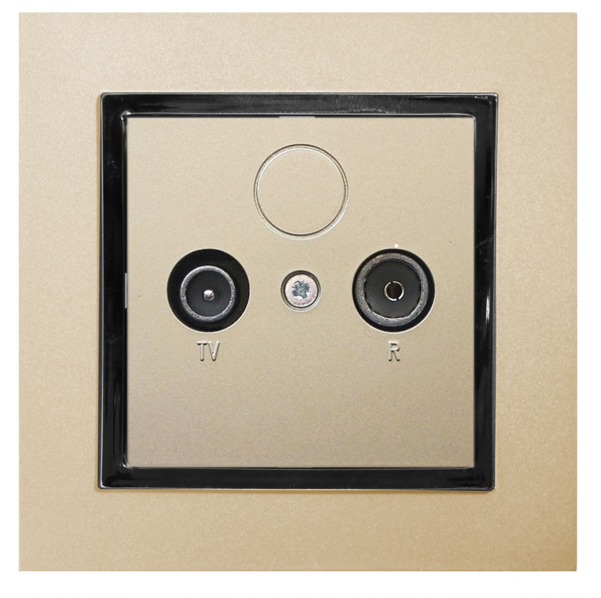 Průběžná zásuvka designové řady bytových vypínačů a zásuvek "Magic" v pískové barvě s chromovaným nebo zlaceným ozdobným rámečkem (volitelné).