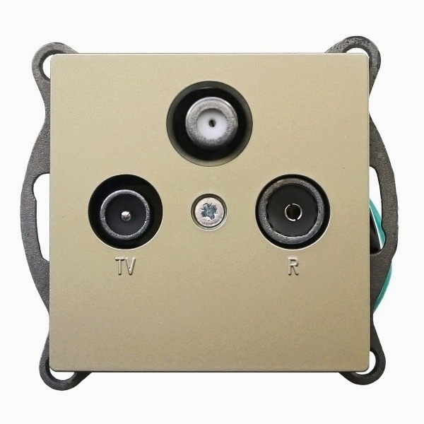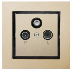 Satelitní zásuvka v pískové barvě z designové řady bytových vypínačů a zásuvek "Magic" s chromovaným, grafitovým nebo zlaceným ozdobným rámečkem (volitelné).